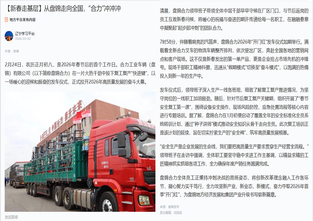 合力工业车辆(盘锦)有限公司……